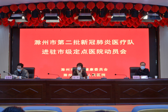 2月12日下午,滁州市第二批抗击新冠肺炎医疗队进驻定点医院动员培训会在市第二人民医院召开,市二院党委书记向红、院长王恒、市卫健委医政科科长雷晶晶以及第二批进驻市二院的25名医护人员参加会议。