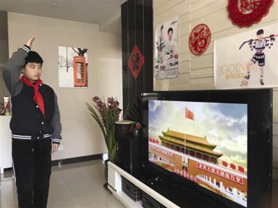 紫薇小学少先队大队长金俣默一边学唱《我的祖国》,一边学做手语操,仪式结束后对妈妈说:“我很喜欢这句话——开学延迟,我们对祖国的爱,不延迟!”四5中队的姚星宇特别用心,把家中的天安门建筑模型放在书桌上,并且在书架上插了面国旗,当进行升国旗环节时,他面向国旗高声歌唱……少先队员们表示,将记住这场庄严而神圣的线上“升旗仪式”,致敬亲爱的祖国,致敬英雄的城市,致敬前方的医护人员,致敬勇敢的逆行者,致敬伟大的时代! (王 静 欧 云)