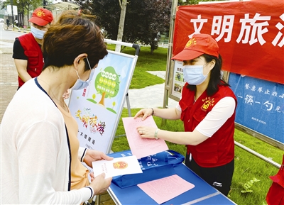 活动中,志愿者通过引导居民观看文明旅游宣传展板、发放《文明旅游倡议书》,提倡大家携起手来,管好自己一言一行,不乱扔垃圾、不随地吐痰、不说脏话、不乱写乱画,积极践行文明旅游,做一个文明的旅游者。