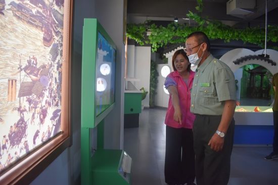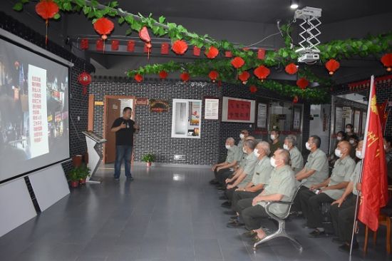 活动中,老军人们排着整齐的队伍参观体验,活动第一站来到龙池社区新时代文明实践站参观各功能科室。龙池社区负责人孙涛为老军人播放了龙池社区宣传短片,详细讲解了龙池社区如何开展垃圾分类试点工作。在龙池社区科普馆中,在社区志愿者的帮助下,老军人们兴致勃勃地体验了垃圾分类趣味跳舞机,许多老军人表示第一次尝试,感到很新鲜,很有趣。