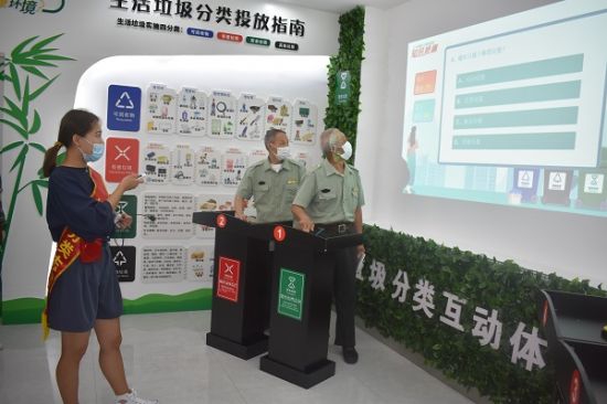 为增强光荣院休养老军人和职工垃圾分类意识和绿色环保意识,培养讲文明、讲卫生、讲科学的绿色健康生活方式,7月16日上午,滁州市光荣院组织休养老军人和职工到龙池社区新时代文明实践站体验垃圾分类。