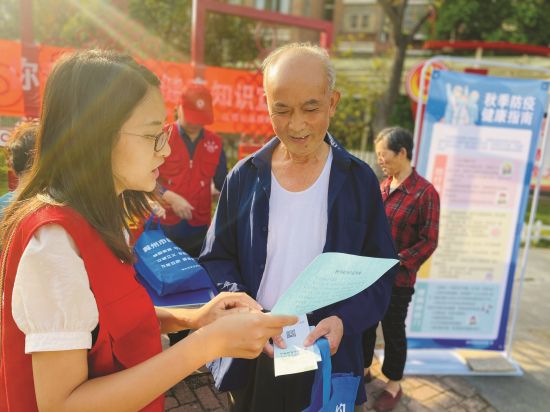 活动现场,志愿者们以秋季疫情防控的健康基本知识、健康生活方式、健康技能知识为主要内容,通过现场面对面的讲解和发放宣传资料相结合的方式,倡导居民培养健康生活方式理念,引导用健康生活方式改掉不良生活习惯。