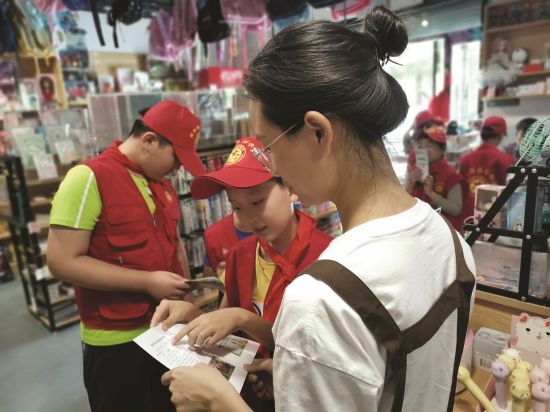 该校小小志愿者们手持《滁州文明16条2.0版》宣传手册、《垃圾分类实用指南》宣传单等,走进校园周边商铺小店,向店主及周边居民耐心宣传文明常识,引导大家遵守公共秩序和公共礼仪,注意保护周边环境卫生,分类投放垃圾,出行时要安全礼让,有序停放交通工具等。