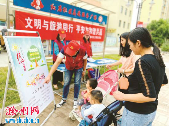日前,南谯区红庙社区新时代文明实践站组织志愿者,在社区志愿服务广场开展“文明与旅游同行 平安与和谐共赢”主题文明旅游宣传,倡导文明旅游行为。