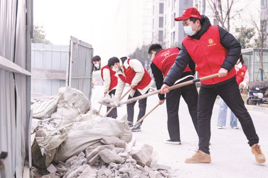 2月4日,南谯区东坡社区联合包保单位在城南一小区清理路面上的建筑垃圾。当日,东坡社区党支部联合共建单位开展文明健康过大年活动,向辖区困难家庭送年货,邀请书法爱好者现场书写春联赠送给社区居民,组织开展爱国卫生志愿服务活动。