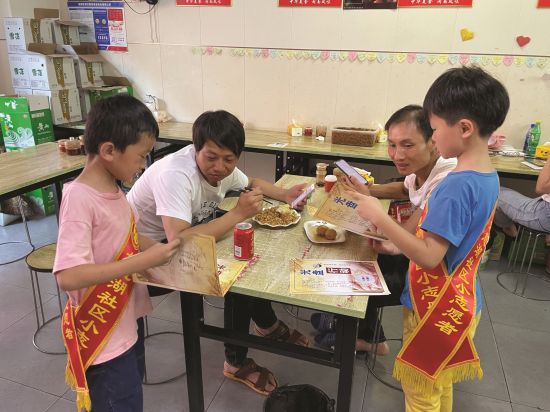 7月14日下午,琅琊区滁阳街道如意湖社区新时代文明实践站开展“光盘行动,文明就餐”宣传志愿服务活动。活动中,小志愿者们在社区工作人员和家长带领下,深入辖区餐饮商户向就餐顾客发放“光盘行动”宣传资料,号召大家加入“光盘行动,你我参与”活动,养成良好的就餐习惯。